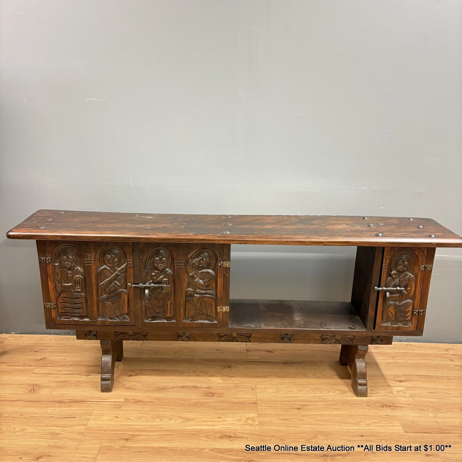 Our current online estate auction features a huge collection of 20th century Native American artwork, sculptures, carvings, paintings and more. A wide variety of French, English and American furniture, A monumental architectural facade of Mercury, Korean Tansu cabinet, Rolex Document Holder, Charles Beckendorf Bule Heron carving, R.C. Gorman Stone Lithograph, 8 foot Kiva Ladder, Navajo carvings, Philip Behymer paintings, Heintzman Upright Piano & Bench, Savanorola Chairs, Antique Stained & Leaded Glass, Manuel Tavares Watercolor Painting, Steve LeBailly Paintings, Navajo Rugs, Painted Ponies, Asian Art, Comic Books and much, much more