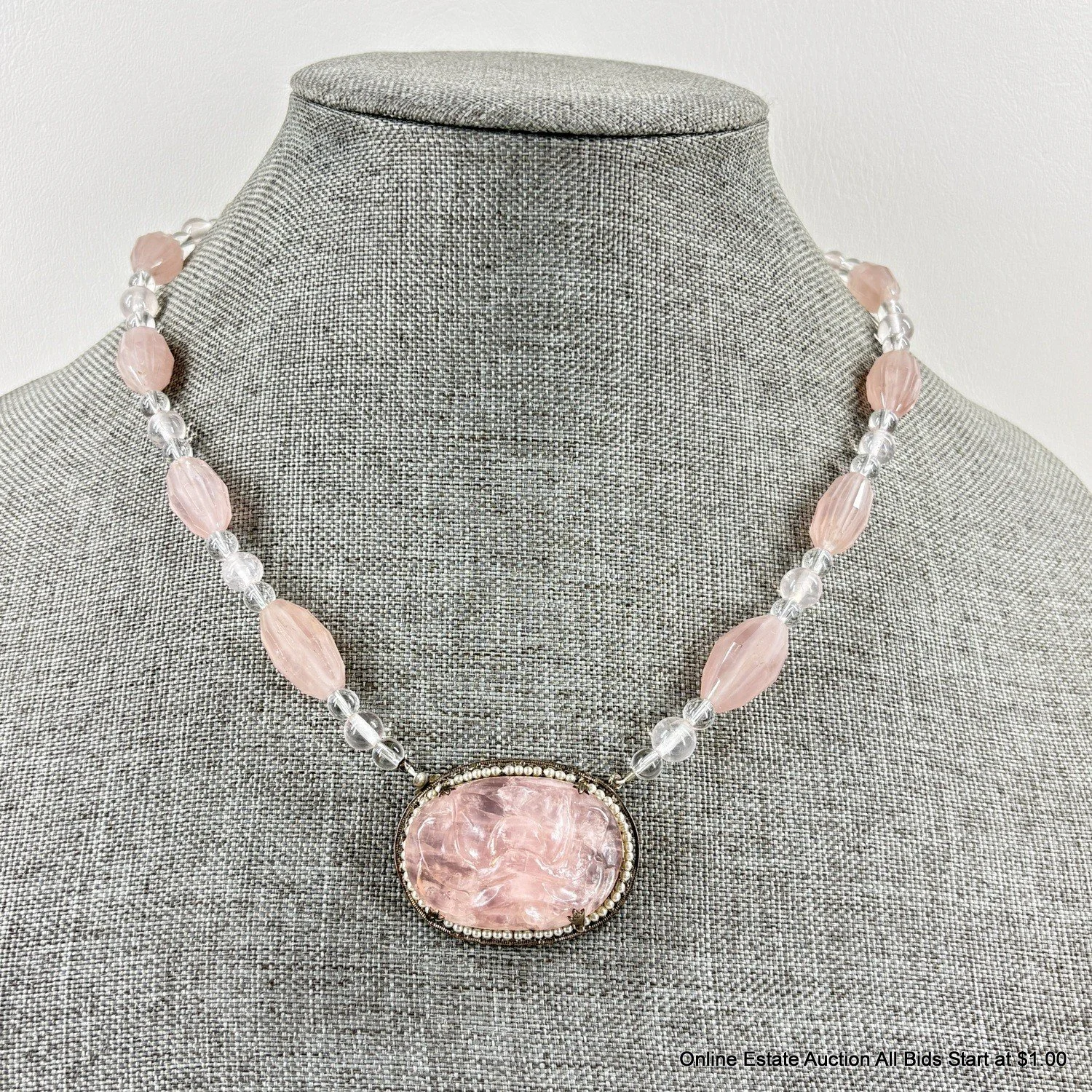 The auction also showcases Asian influences and collectibles, natural gemstone jewelry (e.g., rose quartz necklaces), and other standout treasures such as marble busts and unique home decor.